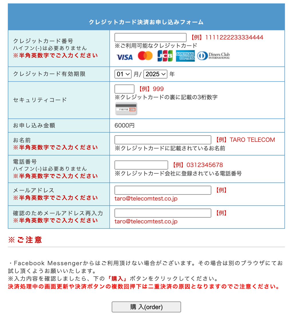 ▼再決済フォームイメージ(テレコム決済)
