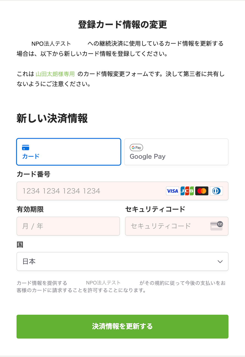 カード情報変更フォーム