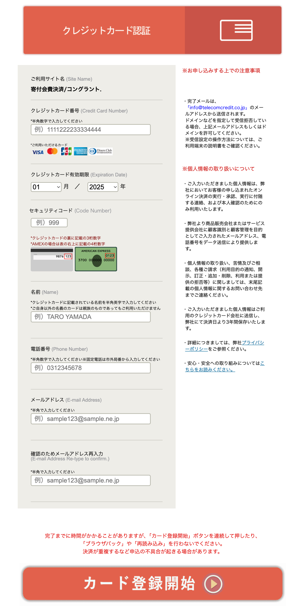 ▼カード情報変更フォームイメージ(テレコム決済)