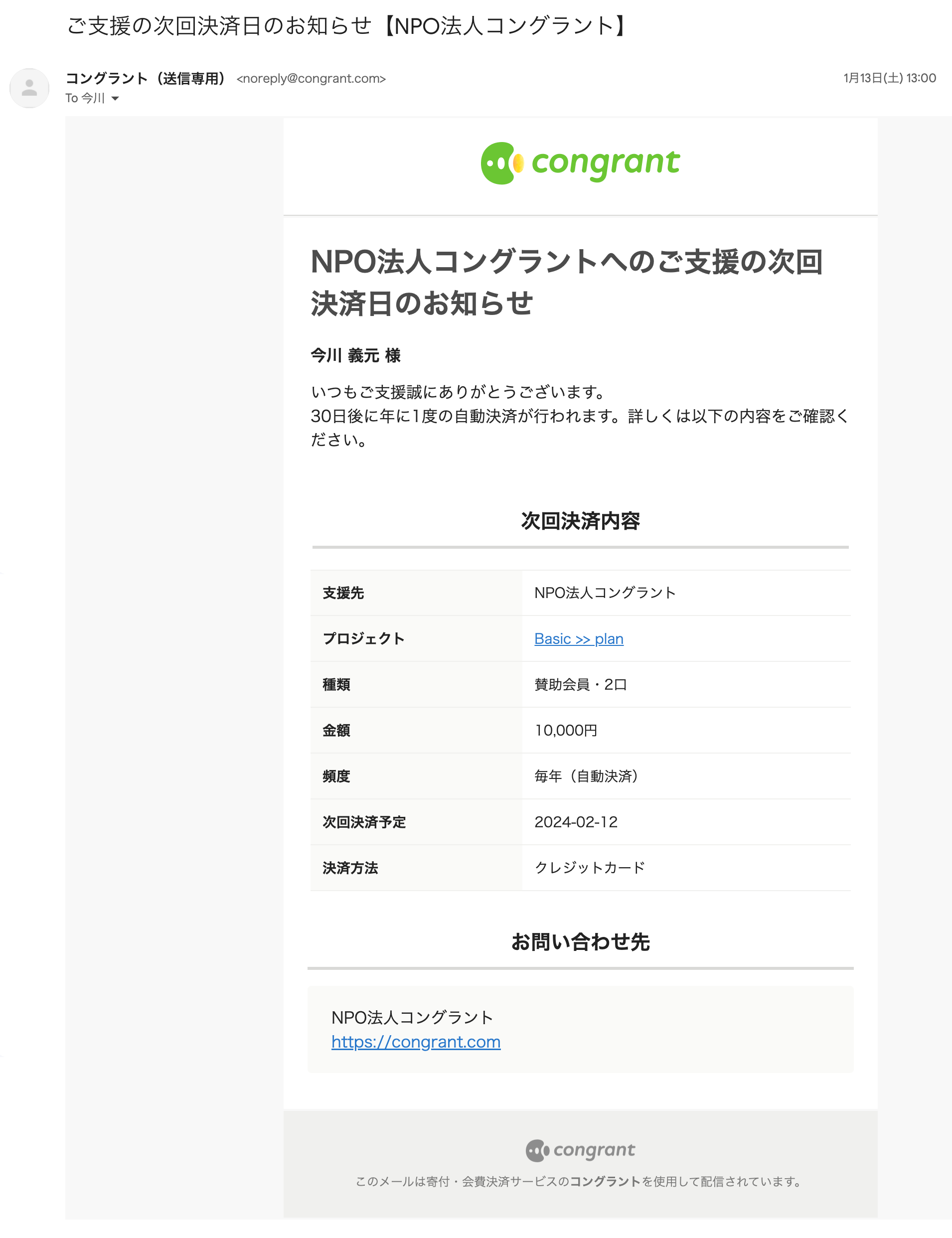 「寄付会費 コングラント」、「コングラント」